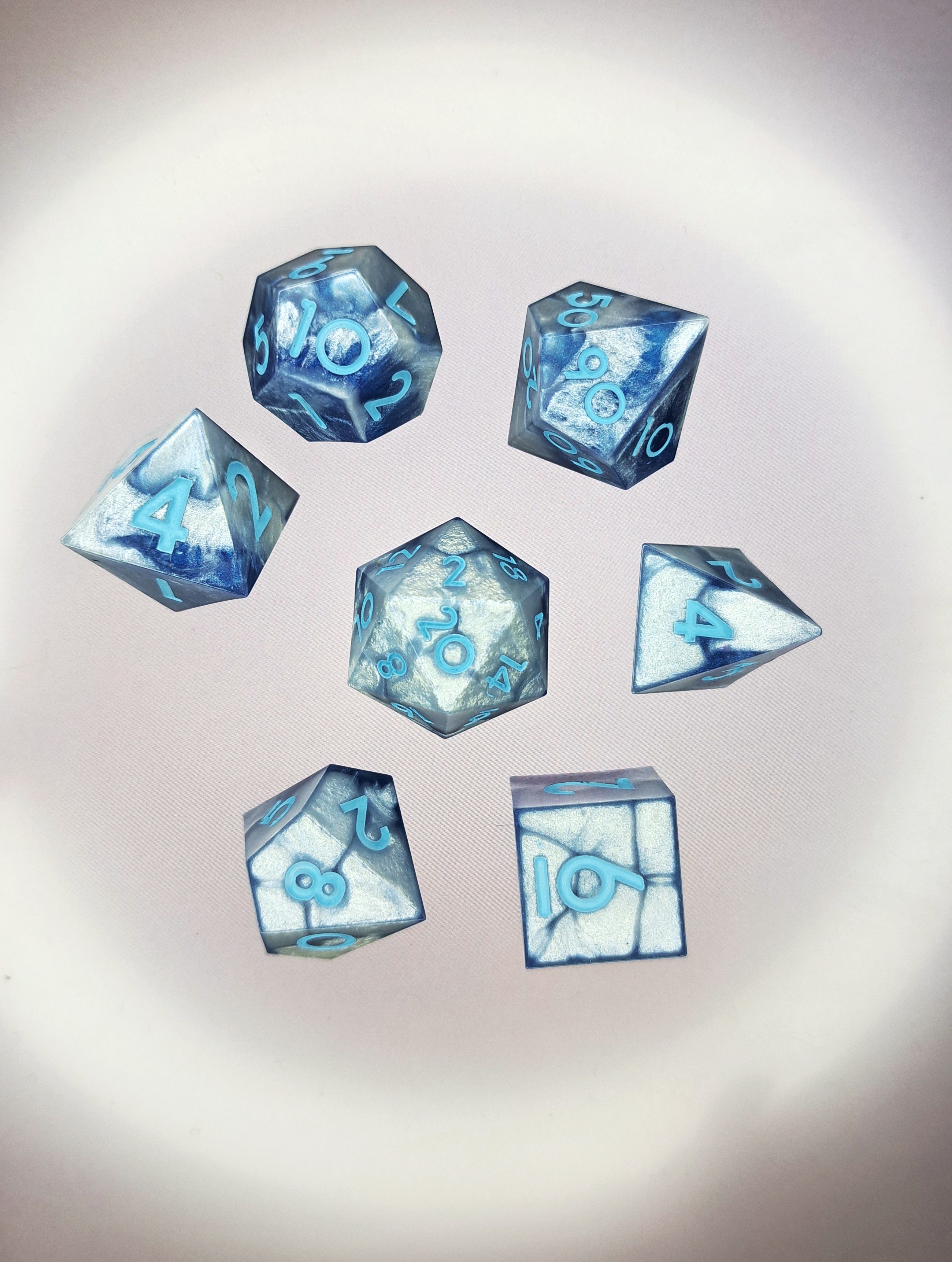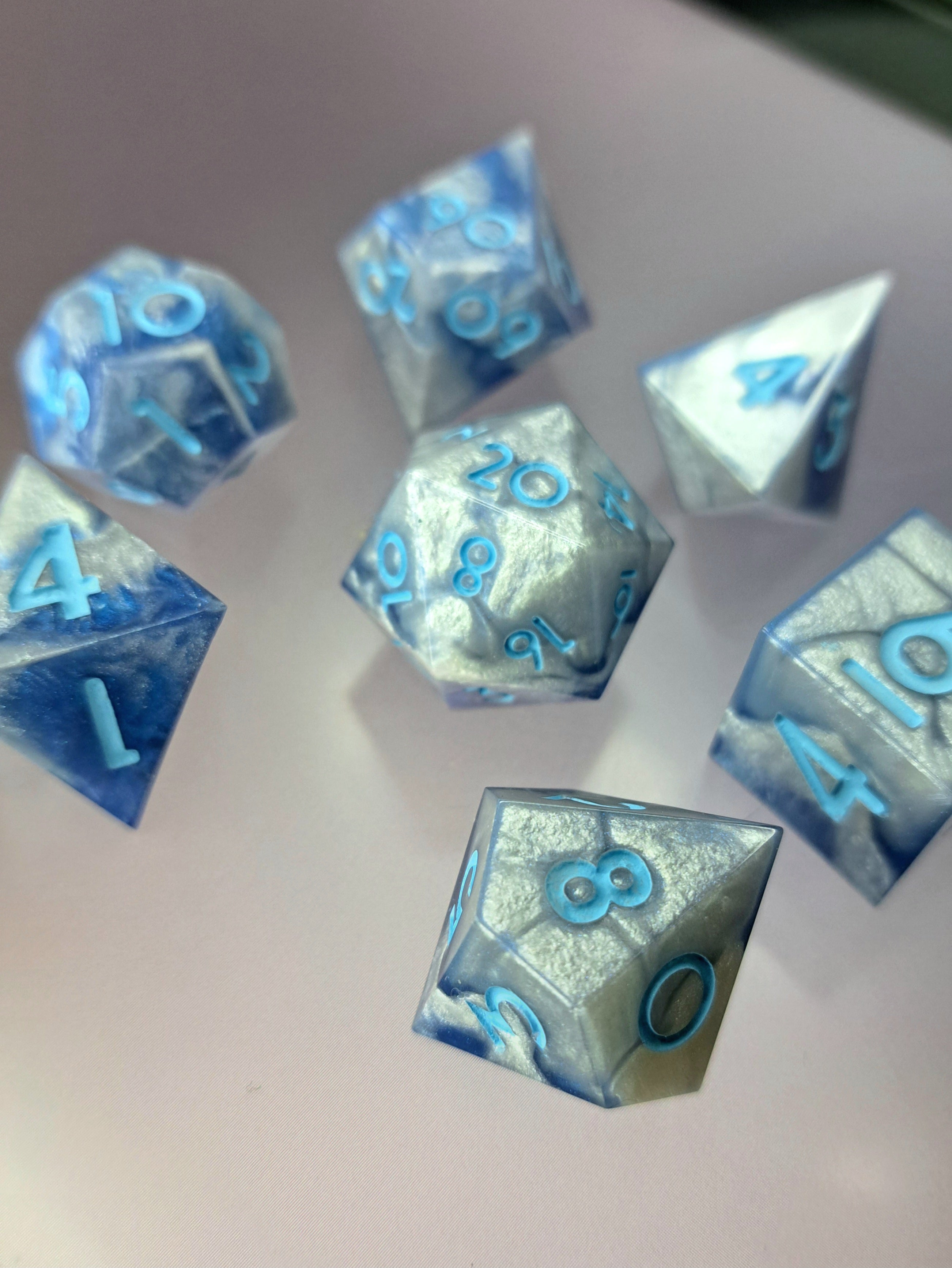 Set de 7 dados de resina, hechos a mano.